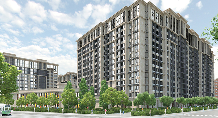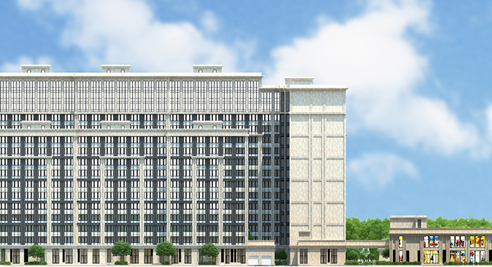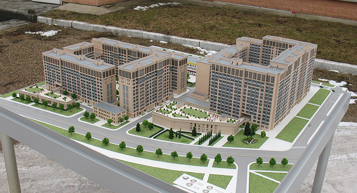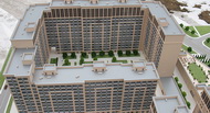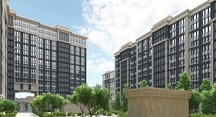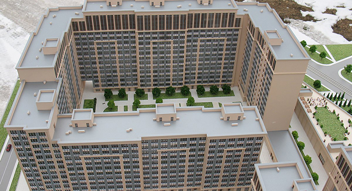 The 16-storey complex of business-class residential buildings with an underground car-park